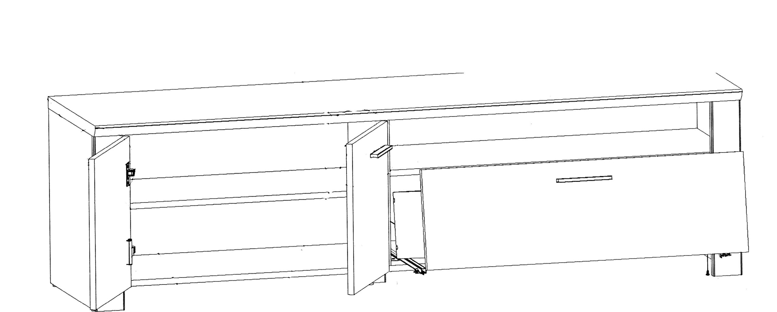 Αυτός το μοντέρνο και ευρύχωρο έπιπλο τηλεόρασης προσφέρει άφθονο χώρο για την τηλεόρασή σας, συσκευές hi-fi, DVD και αξεσουάρ. Διαστάσεις 179x51x48cm (ΜxYxB)