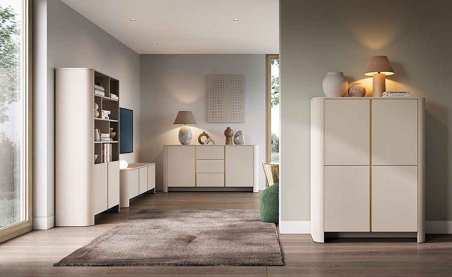 Η σειρά επίπλων Bari συνδυάζει λειτουργικότητα με μοντέρνο σχεδιασμό. Είναι κατασκευασμένα από μελαμίνη Ε05 πάχους 16mm. Τα έπιπλα έχουν προσόψεις χωρίς λαβές και σε συνδυασμό με τις στρογγυλεμένες κολώνες MDF στις άκρες τους προσδίδει μια κομψή και μινιμαλιστική εμφάνιση. Ο συνδυασμός του λευκό kazmir με τις χρυσές λεπτομέρειες κάνει τα έπιπλα Bari να φαίνονται εξαιρετικά κομψά. Ο προσεγμένος σχεδιασμός του επίπλου τηλεόρασης Bari με 3 ντουλάπια από υλικά υψηλής ποιότητας το καθιστούν ιδανική λύση αποθήκευσης για το σαλόνι