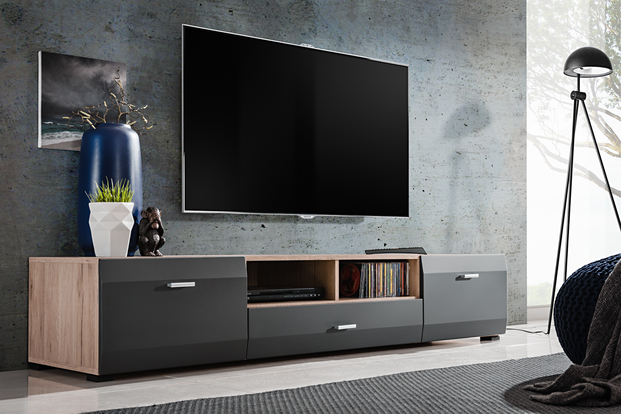 Τα γήινα χρώματα του φυσικού sanremo σε συνδυασμό με το γραφίτη δίνουν μια διαχρονική αίσθηση κομψότητας στο χώρο του καθιστικού ενώ οι πολλοί χώροι αποθήκευσης βοηθούν στη διακόσμηση άλλα και την καθημερινή χρήση