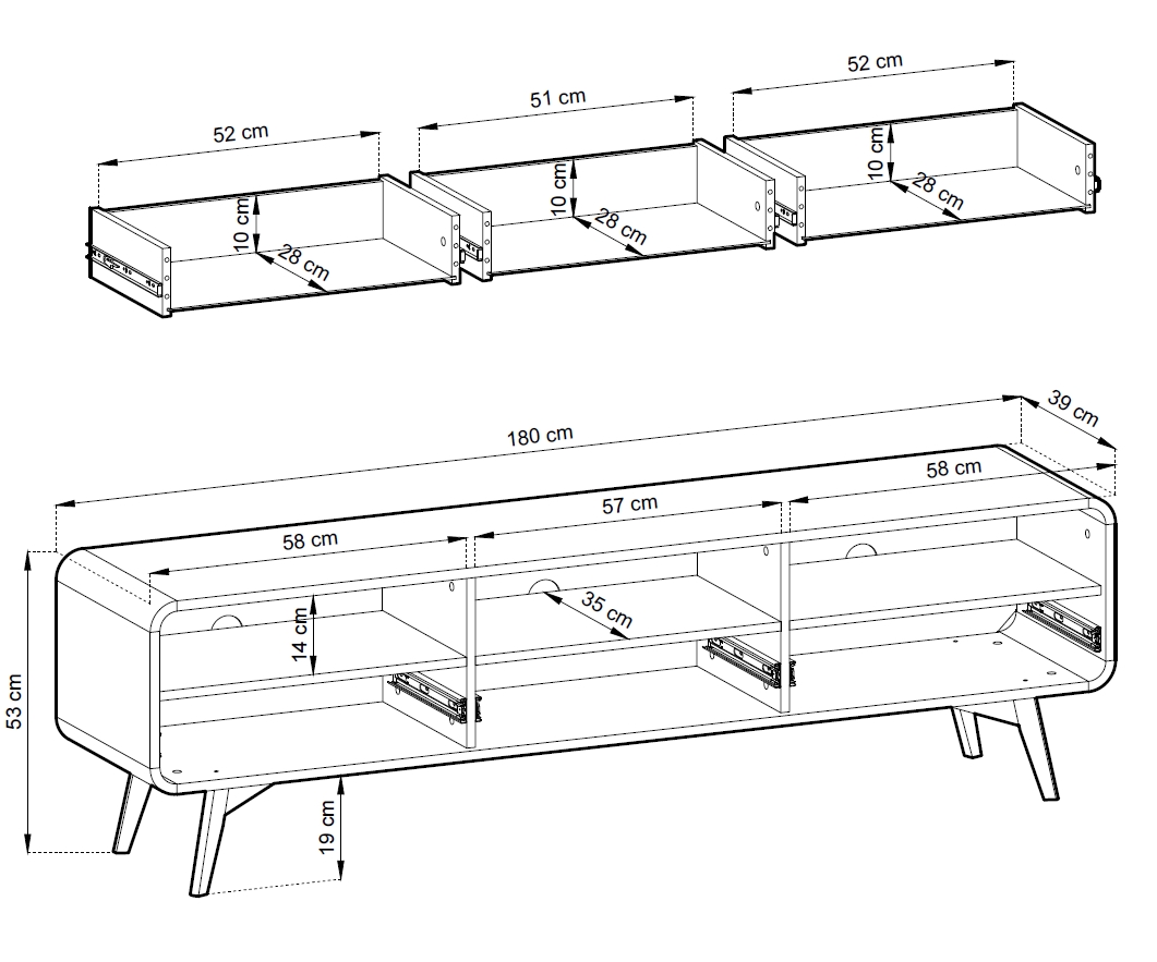 Διαστάσεις 180x53x39cm (ΜxYxΒ)