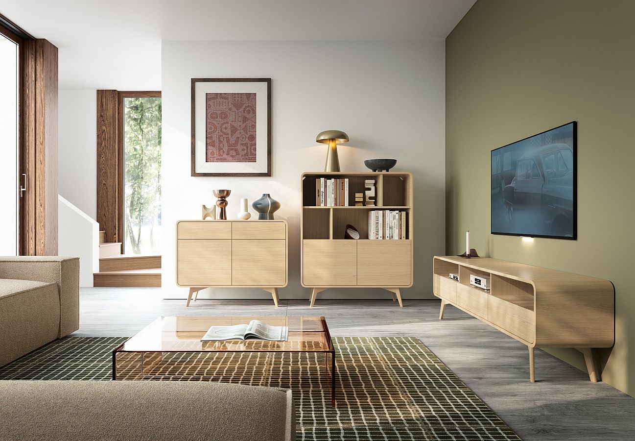 Η σειρά Helion συνδυάζει λειτουργικότητα με μοντέρνο σχεδιασμό σε σκανδιναβικό στιλ με retro εμφάνιση. Τα έπιπλα της σειράς είναι κατασκευασμένα από ανάγλυφη μελαμίνη Ε05 πάχους 16mm. Έχουν προσόψεις χωρίς λαβές, που σε συνδυασμό με τα στρογγυλεμένα τελειώματα από MDF στις άκρες, τους προσδίδει μια μοναδική εμφάνιση. Το αναμφισβήτητο πλεονέκτημα του επίπλου τηλεόρασης, είναι τα τρία μεγάλα, ευρύχωρα συρτάρια, τα οποία είναι ένα εξαιρετικό μέρος για αποθήκευση και θα βοηθήσουν στην οργάνωση του χώρου στο σαλόνι. Το μεγάλο μήκος του, ο μοντέρνος, μινιμαλιστικός σχεδιασμός σε συνδυασμό με τα λεπτά χρώματα που παραπέμπουν στα χρώματα της φύσης κάνουν το έπιπλο τηλεόρασης Helion να φαίνεται εξαιρετικά κομψό και μοντέρνο