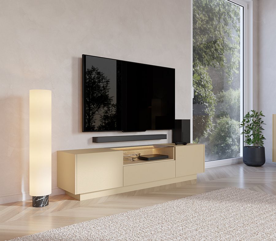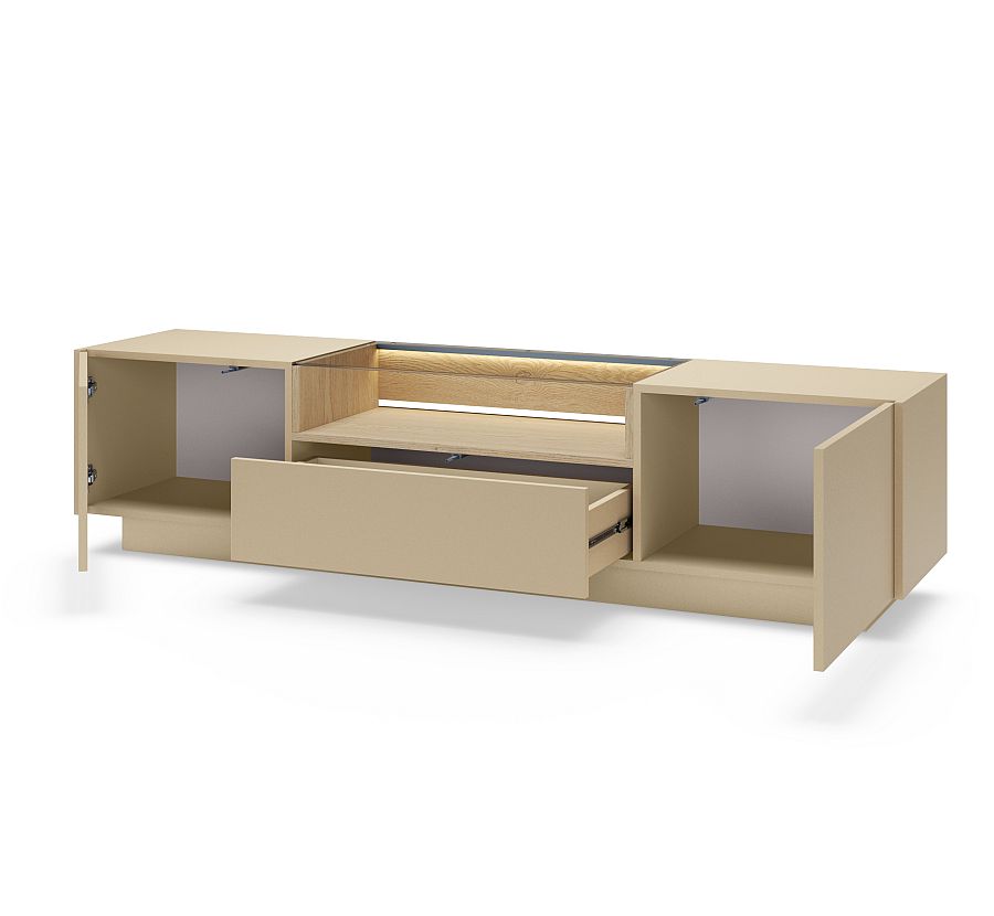 Έπιπλο τηλεόρασης HIRO μπεζ κακάο με συρτάρι και φωτισμό 176x43x40cm
