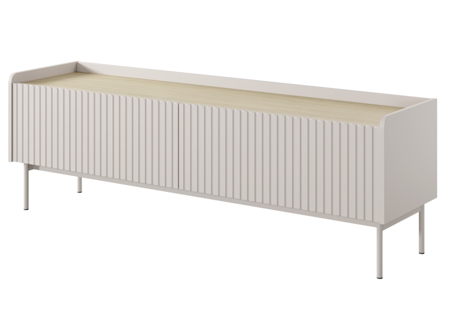 Τα τρισδιάστατα μοτίβα με τη μορφή αυλακώσεων και φρεζαρισμάτων αποτελούν μια νέα τάση στη εσωτερική διακόσμηση, καθιστώντας τις συνθέσεις πιο αισθησιακές – διεγείρουν όχι μόνο την αίσθηση της όρασης, αλλά και της αφής. Το σετ LEVEL με αυλακωτές προσόψεις ταιριάζει απόλυτα σε αυτή την τάση. Η συλλογή συνδυάζει τέλεια τα απαλά, φυσικά χρώματα του μπεζ και του ανοιχτόχρωμου ξύλου. Το μοναδικό στυλ των επίπλων τονίζεται από τις στρογγυλεμένες πλευρές και την χαμηλωμένη επιφάνεια στο χρώμα της σκανδιναβικής βελανιδιάς. Μια αρμονική προσθήκη είναι τα μπεζ, μεταλλικά πόδια, τα οποία προσθέτουν ελαφρότητα στη συλλογή. Αυτά τα έπιπλα είναι συμμετρικά και μινιμαλιστικά, και ταυτόχρονα πρωτότυπα και μοντέρνα.