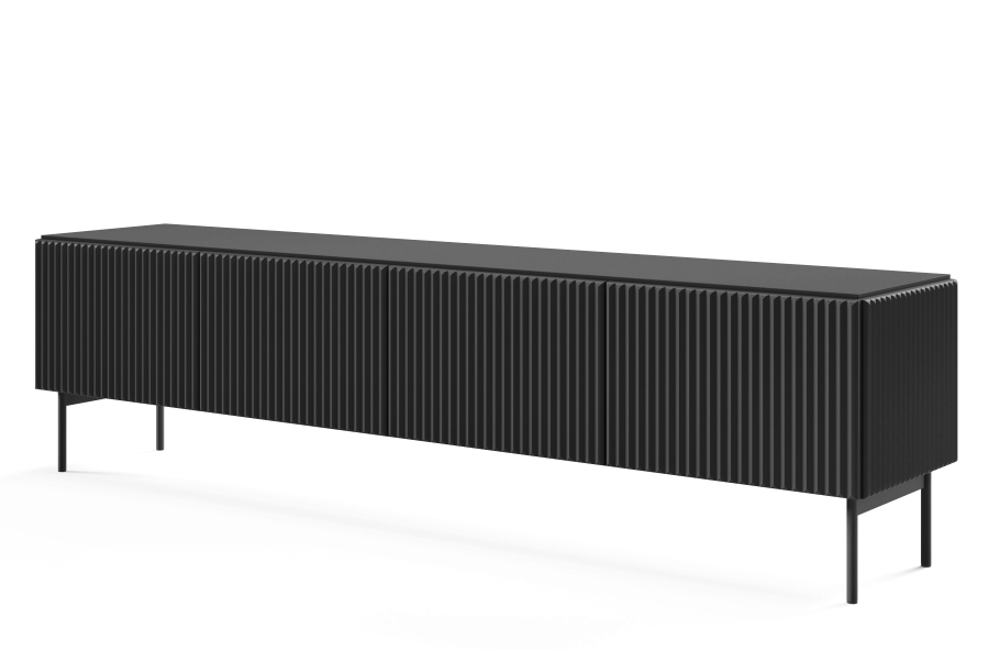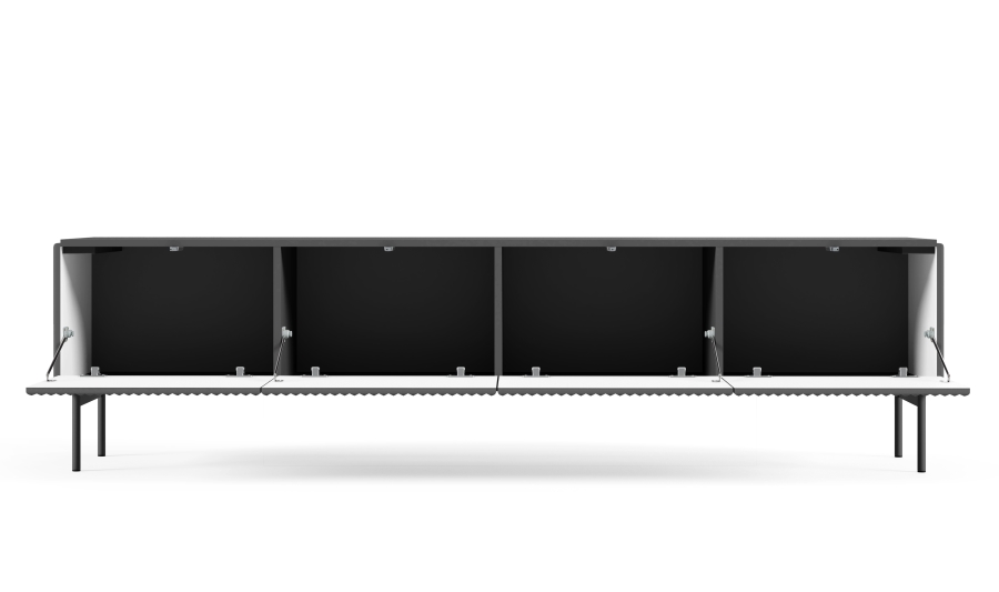 Τα τρισδιάστατα μοτίβα με τη μορφή αυλακώσεων και φρεζαρισμάτων αποτελούν μια νέα τάση στη εσωτερική διακόσμηση, καθιστώντας τις συνθέσεις πιο αισθησιακές – διεγείρουν όχι μόνο την αίσθηση της όρασης, αλλά και της αφής. Το σετ Muti με αυλακωτές προσόψεις ταιριάζει απόλυτα σε αυτή την τάση. Η σειρά επίπλων Muti συνδυάζει λειτουργικότητα με μοντέρνο σχεδιασμό. Είναι κατασκευασμένα από ανθεκτική μελαμίνη σε συνδυασμό με όψεις από MDF που αποτελούν εγγύηση για τη μακροχρόνια χρήση τους. Τα έπιπλα έχουν προσόψεις χωρίς λαβές, γεγονός που τους προσδίδει μια κομψή, μινιμαλιστική εμφάνιση. Τα έπιπλα στηρίζονται σε λεπτά μεταλλικά πόδια ύψους 18cm, προσθέτοντας ελαφρότητα στο σύνολο.