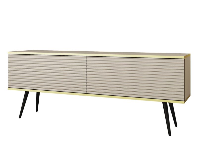 Το Oro είναι ένα πολύ μοντέρνο έπιπλο τηλεόρασης. Είναι εξοπλισμένο με δύο ντουλάπια για την αποθήκευση εύχρηστων αντικειμένων και εξοπλισμού τηλεόρασης. Ο μοντέρνος, μινιμαλιστικός σχεδιασμός σε συνδυασμό με το χρυσό φινίρισμα κάνει το ντουλάπι Oro να φαίνεται εξαιρετικά κομψό.