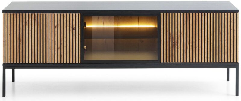 Το Oro είναι ένα πολύ μοντέρνο έπιπλο τηλεόρασης. Είναι εξοπλισμένο με τρία ντουλάπια για την αποθήκευση εύχρηστων αντικειμένων και εξοπλισμού τηλεόρασης. Ο μοντέρνος, μινιμαλιστικός σχεδιασμός σε συνδυασμό με το χρυσό φινίρισμα κάνει το ντουλάπι Oro να φαίνεται εξαιρετικά κομψό.