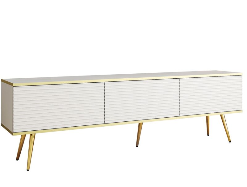 Το Oro είναι ένα πολύ μοντέρνο έπιπλο τηλεόρασης. Είναι εξοπλισμένο με τρία ντουλάπια για την αποθήκευση εύχρηστων αντικειμένων και εξοπλισμού τηλεόρασης. Ο μοντέρνος, μινιμαλιστικός σχεδιασμός σε συνδυασμό με το χρυσό φινίρισμα κάνει το ντουλάπι Oro να φαίνεται εξαιρετικά κομψό.