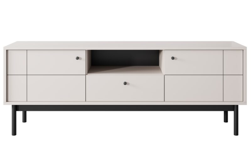 Το έπιπλο τηλεόρασης Royal είναι η ιδανική λύση για άτομα που εκτιμούν τόσο το μοντέρνο σχεδιασμό όσο και τη λειτουργικότητα. Η στιβαρή κατασκευή του από υλικά υψηλότερης ποιότητας, εγγυάται μακροζωία και αντοχή στην καθημερινή χρήση. Θα λειτουργήσει υπέροχα σε κάθε δωμάτιο, όπου δεν θα είναι μόνο ένα διακοσμητικό στοιχείο, αλλά και ένας πρακτικός χώρος αποθήκευσης. Οι προσόψεις από κατεργασμένο MDF του προσδίδουν έναν μοναδικό χαρακτήρα, ενώ οι λαβές από αλουμίνιο και χρυσό προσθέτουν μια διακριτική, κομψή πινελιά που σίγουρα θα τραβήξει την προσοχή. Το ματ λευκό/χρυσό χρωματικό συνδυασμό ταιριάζει αρμονικά σε μοντέρνες, μινιμαλιστικές διατάξεις, ταιριάζοντας τέλεια με διάφορα στυλ εσωτερικής διακόσμησης.