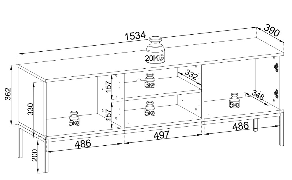 Διαστάσεις 154x39x56cm (ΜxBxY)