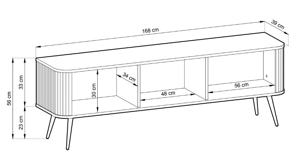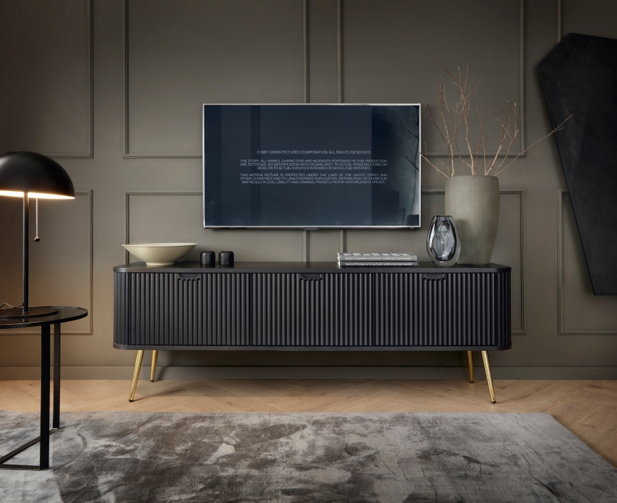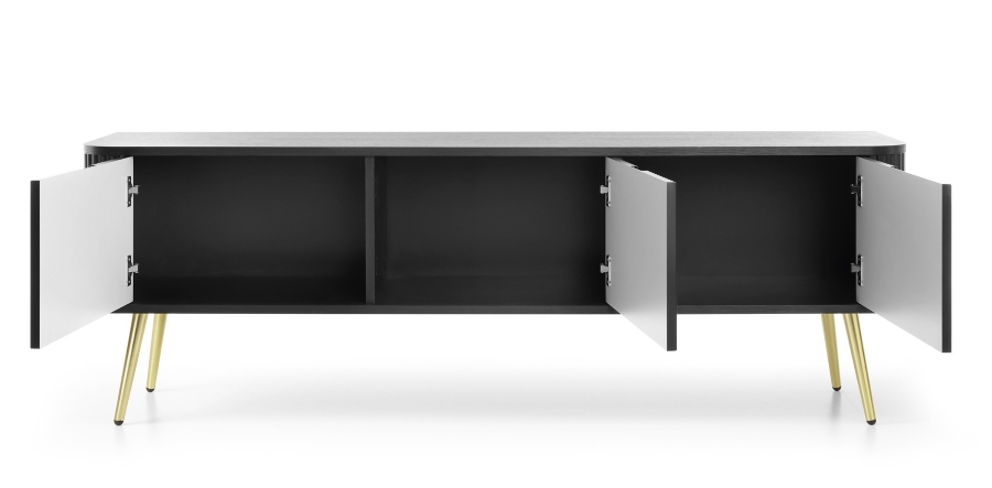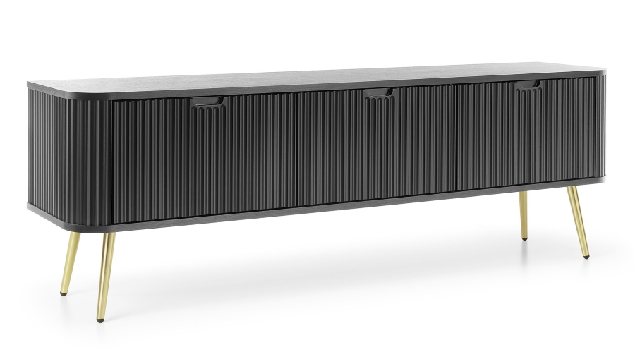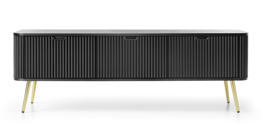 Το έπιπλο τηλεόρασης Zova είναι ένα πολύ πρακτικό έπιπλο σε μοντέρνο στυλ. Είναι εξοπλισμένο με τρία ντουλάπια καθιστώντας το ιδανικό για την αποθήκευση αντικειμένων. Ο μπουφές Zova θα λειτουργήσει καλά τόσο σε ένα μοντέρνο όσο και σε ένα πιο κλασικό εσωτερικό. Ο μοντέρνος, μινιμαλιστικός σχεδιασμός σε συνδυασμό με τις φρεζαρισμένες προσόψεις κάνει το έπιπλο να φαίνεται εξαιρετικά κομψό. Μπορείτε να επιλέξετε πόδια σε μαύρο ή χρυσό χρώμα, ώστε να τον ταιριάξετε με τον εσωτερικό σας χώρο.
