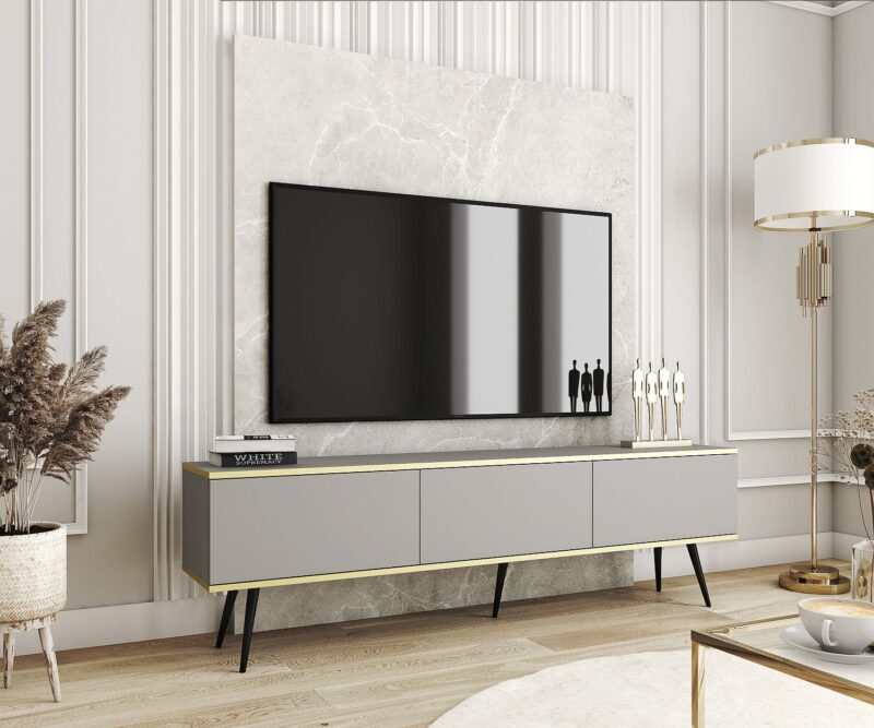 Το Oro είναι ένα πολύ μοντέρνο έπιπλο τηλεόρασης. Είναι εξοπλισμένο με τρία ντουλάπια για την αποθήκευση εύχρηστων αντικειμένων και εξοπλισμού τηλεόρασης. Ο μοντέρνος, μινιμαλιστικός σχεδιασμός σε συνδυασμό με το χρυσό φινίρισμα κάνει το ντουλάπι Oro να φαίνεται εξαιρετικά κομψό.