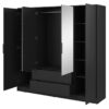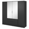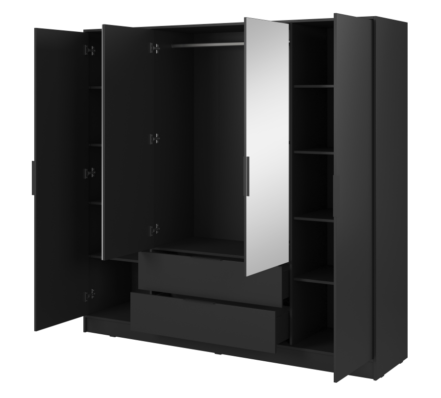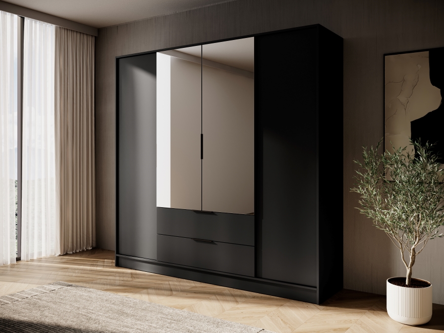 Η Η τετράφυλλη ντουλάπα Kelly σε ανθρακί είναι μια μοναδική επιλογή για άτομα που αναζητούν μοντέρνες, κομψές λύσεις για την κρεβατοκάμαρά τους. Χάρη στο ευρύχωρο εσωτερικό της τα ρυθμιζόμενα ράφια και τα συρτάρια, η ντουλάπα παρέχει πλήρη ελευθερία οργάνωσης. Ιδανική τόσο για το υπνοδωμάτιο όσο και για το γκαρνταρόμπα, η ντουλάπα Kelly θα σας βοηθήσει να αποθηκεύσετε εύκολα ρούχα, αξεσουάρ και άλλα απαραίτητα αντικείμενα.. Διαθέτει 11 ράφια και 2 συρτάρια καθιστώντας την ιδανική για αποθήκευση αντικειμένων. Η ντουλάπα διατίθεται επίσης σε άλλα χρώματα και σε έκδοση χωρίς καθρέφτη.