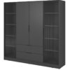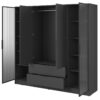Ντουλάπα Kelly Flutes RD Γραφίτης με ημιδιάφανο τζάμι 206x200x51cm