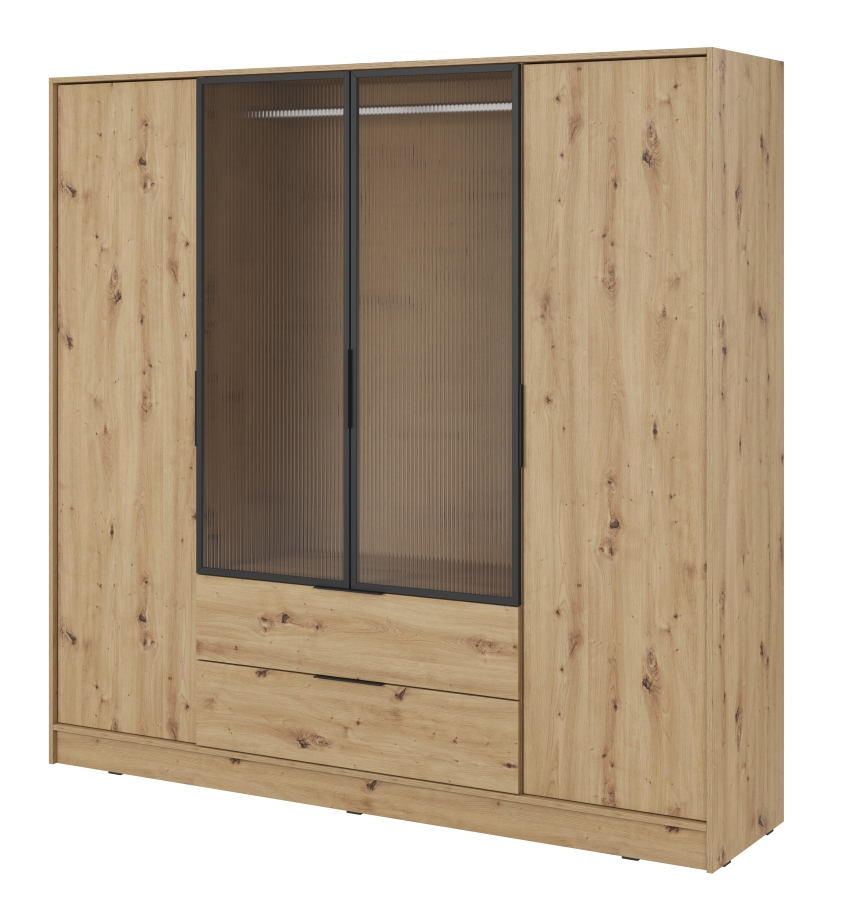 Ντουλάπα Kelly Flutes RM Φυσικό Artisan με ημιδιάφανο τζάμι 206x200x51cm