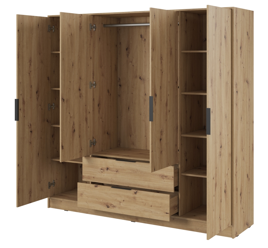Η τετράφυλλη ντουλάπα Kelly είναι μια μοναδική επιλογή για άτομα που αναζητούν μοντέρνες, κομψές λύσεις για την κρεβατοκάμαρά τους. Χάρη στο ευρύχωρο εσωτερικό της τα ρυθμιζόμενα ράφια και τα συρτάρια, η ντουλάπα παρέχει πλήρη ελευθερία οργάνωσης. Ιδανική τόσο για το υπνοδωμάτιο όσο και για το γκαρνταρόμπα, η ντουλάπα Kelly θα σας βοηθήσει να αποθηκεύσετε εύκολα ρούχα, αξεσουάρ και άλλα απαραίτητα αντικείμενα.. Διαθέτει 11 ράφια και 2 συρτάρια καθιστώντας την ιδανική για αποθήκευση αντικειμένων. Η ντουλάπα διατίθεται επίσης σε άλλα χρώματα και σε έκδοση με καθρέφτη.