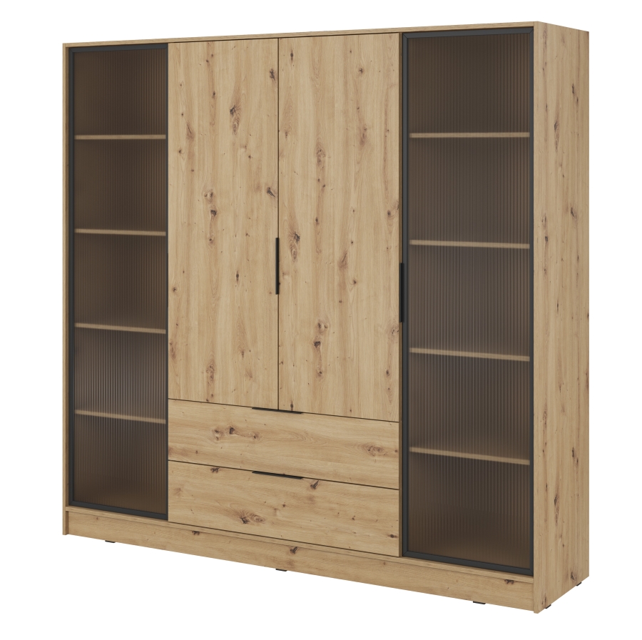 Ντουλάπα Kelly Flutes RD Φυσικό Artisan με ημιδιάφανο τζάμι 206x200x51cm
