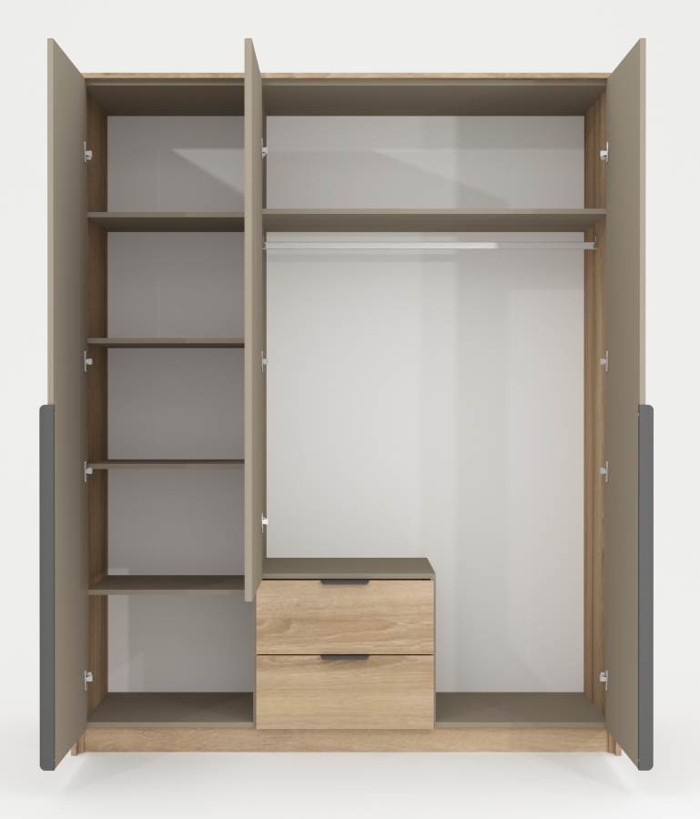 Η τετράφυλλη ντουλάπα Letto είναι μια μοναδική επιλογή για άτομα που αναζητούν μοντέρνες, κομψές λύσεις για την κρεβατοκάμαρά τους. Ο μοναδικός σχεδιασμός της, σε συνδυασμό με την υψηλή λειτουργικότητα, την κάνει να ταιριάζει απόλυτα σε κάθε μοντέρνο εσωτερικό. Διαθέτει 2 βαθιά συρτάρια και 3 ντουλάπες (1 με καθρέπτη).