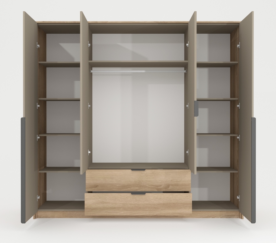 Η τετράφυλλη ντουλάπα Letto είναι μια μοναδική επιλογή για άτομα που αναζητούν μοντέρνες, κομψές λύσεις για την κρεβατοκάμαρά τους. Ο μοναδικός σχεδιασμός της, σε συνδυασμό με την υψηλή λειτουργικότητα, την κάνει να ταιριάζει απόλυτα σε κάθε μοντέρνο εσωτερικό. Διαθέτει 2 βαθιά συρτάρια και 4 ντουλάπες (2 με καθρέπτες).