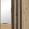 Η ντουλάπα Nelly είναι μια πρακτική επιλογή ντουλάπας που θα αποδειχθεί χρήσιμη, μεταξύ άλλων: στην κρεβατοκάμαρα, στο γκαρνταρόμπα ή στο χολ. Συνδυάζει λειτουργικότητα και μοντέρνο σχεδιασμό. Διαθέτει 2 βαθιά συρτάρια 2 αποσπώμενα εσωτερικά ράφια στο δεξί ντουλάπι και κάθετες λωρίδες από MDF 18 mm στις πόρτες. Η ντουλάπα διατίθεται επίσης σε άλλα μεγέθη και χρώματα και σε έκδοση χωρίς καθρέφτη.